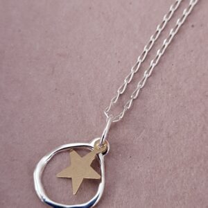 Handmade sterling silver oval necklace with tiny gold star addition 18″ chain
